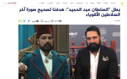 图片4:2018年12月,在Payitaht中饰演主人公阿卜杜勒·哈米德二世的土耳其演员Bülent na在接受卡塔尔半岛电视台采访时表示要为这位奥斯曼末代苏丹(“末代苏丹”不是严格意义上的最后一位苏丹)正名,并认为土耳其电视剧是连接土耳其与阿拉伯世界的桥梁,尤其是历史剧,最近特别受阿拉伯人喜欢。
