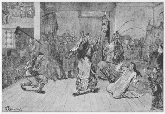 我们在这里休息了一段时间,轿夫们用手指着一个地方给我看,那是在悬崖绝壁间的最险峻的一条路,从远处来看,几乎就无路可走。因为太过险峻,在路口修了一堵墙,以阻止游客前往。但是据说有些来此拜祭的香客,他们在此向泰山神许下承诺,如果泰山神能让他们生命垂危的父母得以康复,他们将再次返回这里,并从这里跳下去,把自己摔得粉身碎骨,以此来作为牺牲来感谢泰山神的保佑,也体现作为儿女的孝道。据说,有个阶段这一残酷的风俗是如此的流行,以至于当地官府也不得不出面干涉,加以制止,甚至还惊动了某位皇帝,是他下令修建了那堵墙,以阻止再有此类悲剧的发生。