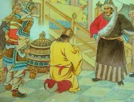 石敬瑭又惊又喜,急忙跪倒在耶律德光的脚下,假惺惺地推辞,说道:“有契丹父皇在上,孩儿岂敢,岂敢!”