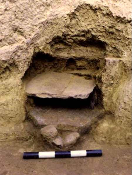 由汉代再往前溯,没有发现煎饼存在的线索。不过再往前跨越三千年,到了史前时代,又有了意想不到的发现。在青海民和喇家村齐家文化遗址,发掘出4000年前的一些窑洞式房址,有些房间的一角用石板建有壁炉,这些壁炉应当可以用于烙饼。当时已经制成了小米面条,小米煎饼也可能有了。