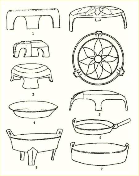 北方一些地区流行现做现卖现吃的煎饼果子,煎饼标准的煎锅称为鏊,面平无沿,三条腿,或就是一块方圆不同的平铁板。正规的烙饼平底锅称为饼铛,是煎饼、烙饼的利器。《说文句读》说:“鏊面圆而平,三足,高二寸许。”可见鏊在古代,是专用于烙饼的炊器。