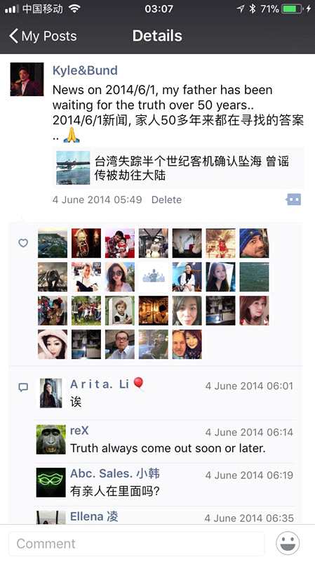 “大伯找到了,飞机掉海里了。”2015年春节,孙国维回台北看望他父亲,拿出手机上的报道给他父亲看。他父亲看完,终于平淡地说了一句:“哦”。