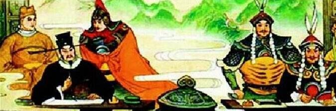 景德元年,即1 0 0 4年9月,辽军攻宋。宋朝廷发生了主战和主和之争。以参政知事王钦若为首的主和派密请真宗迁都金陵(今江苏南京),以宰相寇准为首的主战派则主张真宗御驾亲征。后在大敌压境和广大军民的一致请求下,已被辽军来势汹汹之势吓破了胆的宋真宗才不得不同意亲征。可是当真宗亲率大军到达韦城(今河南渭县东南)时,看到辽军气盛,又畏缩不前,是寇准等人坚持继续进军,殿前都指挥使高琼用鞭子驱赶抬轿士卒,硬是把真宗推到了澶州城楼上的。前线众将士一见黄龙旗迎风招展,知道皇帝亲来督战,顿时士气大振,大败辽军。辽军兵损将折,士气低落,又由于孤军深入,给养困难,处境不利,只好秘密派使臣韩杞到宋营求和。宋朝廷虽然大获全胜,但真宗早已怯战,厌战,见来求和,当然求之不得。他以拒绝割地,愿以重金赏赐为条件,派使臣曹利用前去谈判。临行前,他又对其嘱道:“如果迫不得已,只要不超过百万,都可以答应下来。”但在曹利用出发前,寇准又将其召到自己的营帐道:“虽然皇上允以不过百万,可你如果超过3 0万,待回来后我就杀了你。”曹利用一听,吓得脸都变色了,只好答道:“请宰相放心,当然越少越好。”