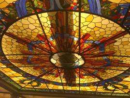 荣宅宴会厅的彩色玻璃天顶尤为闪耀 走廊处的彩色玻璃天顶