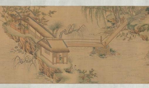 出了“弄水轩”,继续往北走,不远有一个小潮,中间有一个人工小岛,种了很多竹子。有趣的是,他 将竹子馆结在一起, 好象海民在湖滨搭的草庵子,故取名为“钓鱼庵”。苏东坡见这个地方很幽雅,富有浪漫色彩,心情格外痛快。司马光见客人高兴,命随身伺候的仆人拿来钓竿,几个人在湖边垂钓休息。他们撒钩不久,便钓起一条金黄色鲤鱼,引得客人十分开心,大笑不止。