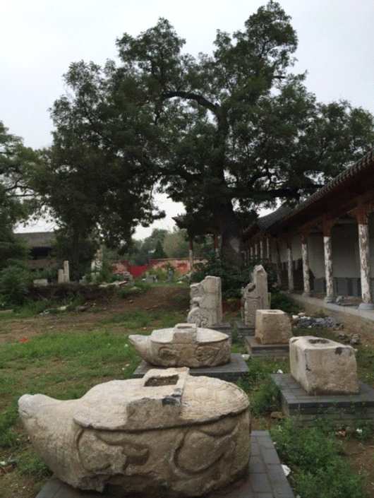 从商王庙前往昼锦堂,其间有碑亭,亭内立有《昼锦堂记》《荣事堂记》《醉白堂记》《重修宋忠献王昼锦堂碑亭记》4通碑铭。其中《荣事堂记》是赵鼎臣撰文,宣和元年(1119)立石,碑文斑剥难辩。苏轼的《醉白堂记》是明代重刻,《碑亭记》则是清代的产物。为了保护古碑,碑亭砌墙上锁,并不开放,亭外的昼锦堂记碑则是当代的复制品。不过从碑亭窗缝仍可张望昼锦堂记碑蔡襄的书法,“端重严劲,绝类鲁公(颜真卿),宋人称为本朝第一,信不虚也”。宋代书法以苏、黄、米、蔡为四大家,蔡或为襄,或为京。蔡襄书法盛名一时,讲求唐人法度,与苏、黄、米书法的文人意态绝不相同。《昼锦堂记》的书写并非一气呵成,而是一纸一字反复琢磨,然后连缀而成,“其书《昼锦堂》每字作一纸,择其不失法度者,裁截布列,连成碑形,当时谓‘百衲本’,故宜胜人也”。碑亭往东是昼锦堂遗址,1967年毁于火灾之后尚未修复,如今仅剩破败的清代建筑奎楼,古槐,以及大量破损石刻碑铭。