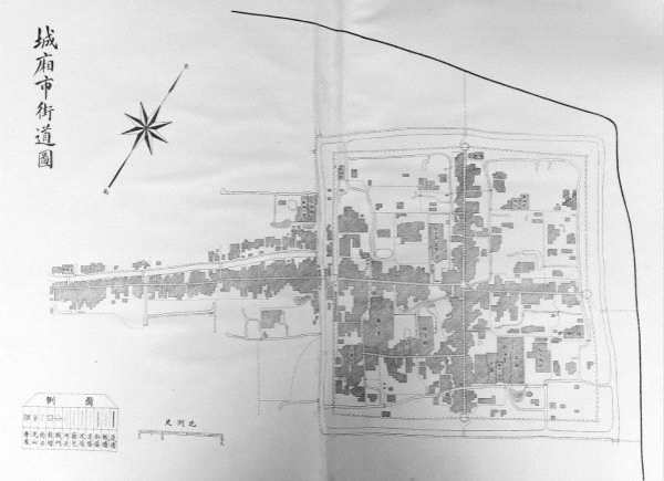 这种另类的江南城市,在城市形态上的最显着特征便是“厌水”。如今宝山老城区域内虽然已经看不到任何水系,但在旧时城内还有些许沟渠,只不过大多浅狭短小,其宽幅大约一步可跨。据历代文献来看,城内最重要也是最早修建的街道——十字街上的几座桥,多数都是在建城几十年后才造的,可见城内水渠并不阻碍道路,宽度应该很小。现存的大成殿前一段小水道就是原先的“学渠”,宽度正是如此。这样细窄的水道,自然不能行船,甚至有时连作为饮水都不够用。光绪《宝山县志》卷四就说:“城中水道,鲜潴蓄之区,且湮塞逾半,猝难修复,设遇小旱,每劳远汲。”更为奇特的是城内水道与街道各行其道,互不相干,迥异于传统江南城市之中街道与河道相互依存的“街水并行”风貌。显然,宝山老城厢是一座不怎么亲水的城市,它更重要的使命是金戈铁马,守卫国门。
