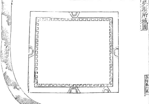 明嘉靖《吴淞所城图》,当时吴淞江所新城刚建不久,城内也只草具规格,所以图中对城内地物绘制简略。地图来源:嘉靖《嘉定县志》