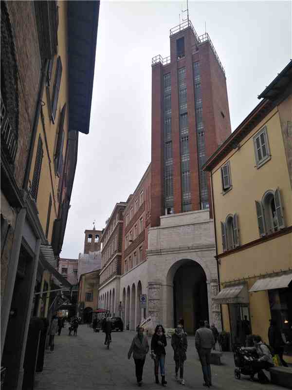 艾米丽亚大道从伊莫拉市中心向东而去。高楼为法西斯时期风格的建筑,在意大利的城市中经常可以看到