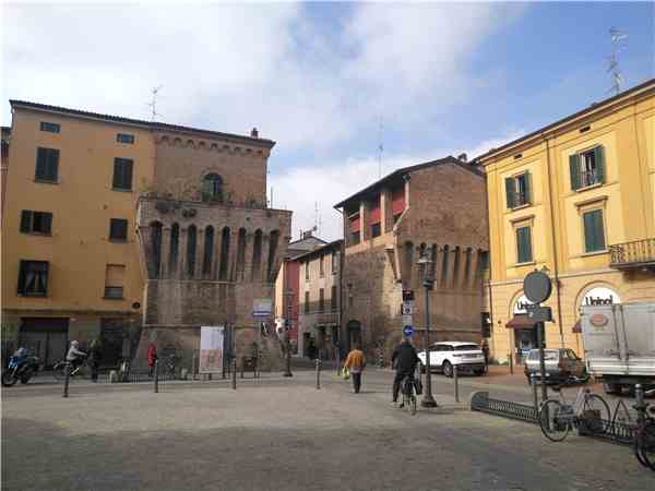 吉罗拉莫对伊莫拉很重视。这座城市原本是一个驿站,其主干道就是东西向的艾米丽亚大道,南北两边有一些13世纪迁进来的修道院,围绕着修道院兴起了一些市民居住社区。与东西主干道直角相交的还有一条南北干道,两条道路交叉处有一处广场,是商业贸易的主要区域,市政厅就被建在这里,坐西朝东。这种布局是13世纪兴起的新城的典型特征。但是当吉罗拉莫统治这座城市以后,将其改造得更加规则规范,整座城市呈现出棋盘格状的布局,所有道路几乎都呈直角相交。城市被城墙包围着,有一些城门到今天还遗留着。在城市的西部边缘处,还建有一座壮观坚实的城堡,作为吉罗拉莫领地的防御工事。吉罗拉莫在市中心广场上还建有自己的宅邸,正对着市政厅,面前是一片广阔的广场,体现了他作为领主的权力和地位。当然,这也体现了教皇权力对这里的控制。