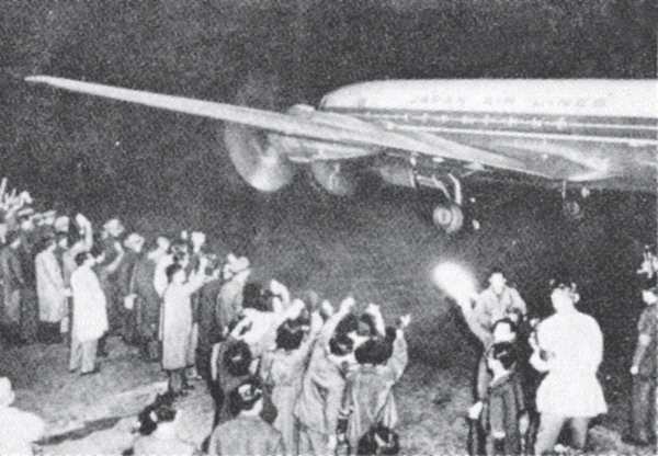 1954年2月国际线第一架航班出发(日本航空史编纂委员会编《日本航空史》,昭和战后编,1992年9月,日本航空协会)。但是,根据此书,第一次航班的21名乘客中,只有5人是买票乘坐的。第二次航班只有1个大人和1个小孩乘坐,还远远没有到盈利的程度。草创时期的困苦状况,在这之后还持续了很长一段时间。