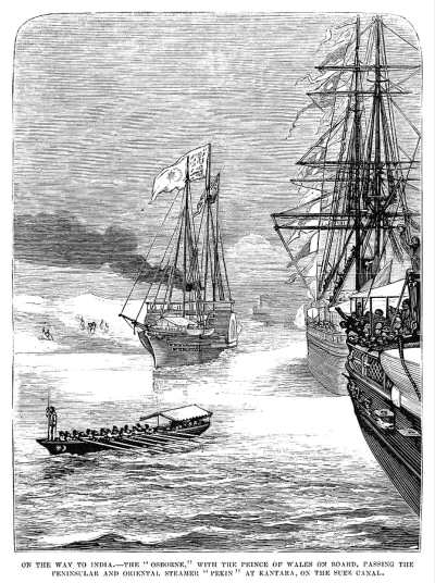 1875年10月,日后的英王爱德华七世经苏伊士运河前往印度;一个月后,英国通过股票购买,完成了对苏伊士运河的完全控制