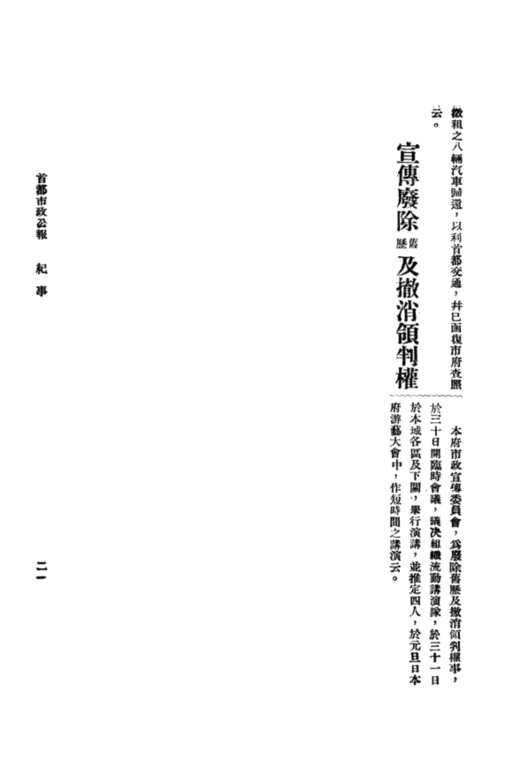 《首都市政公报》1930年第51期《宣传废除旧历及撤消领事裁判权》