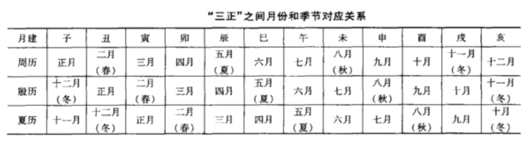 “三正”之间月份和季节对应关系
