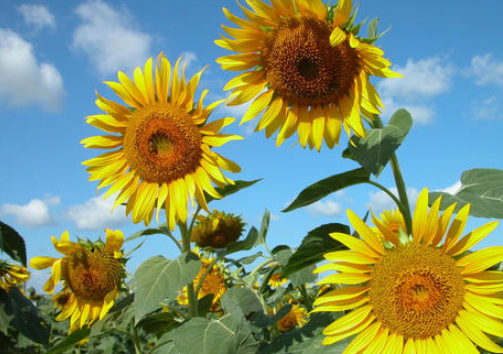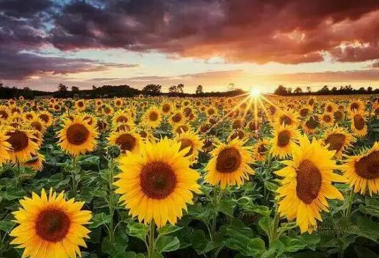 向日葵也被称为向阳花、葵花籽,它的花是头花序,通常称为花盘。每天早上太阳一出来,它就会把它们的圆花盘放在太阳面前,随着太阳慢慢升起,它也慢慢抬起头来。无论太阳去哪里,它都会跟随它直到太阳下山时,它低下了头。