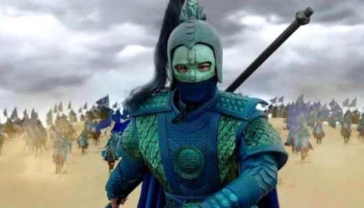 为首一将,披头散发,戴着一个面目狰狞的铜面具,大声喊杀,率先冲向西夏军。他左冲右突,勇不可挡,西夏军无不挡者披靡。