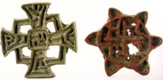比如为了传教,传教士将十字符号和突厥人原始信仰里的“万”字符号结合起来。哪怕牧民们不懂十字的宗教含义,也会把这些十字做成护身符或者腰牌,甚至刻在身上。
