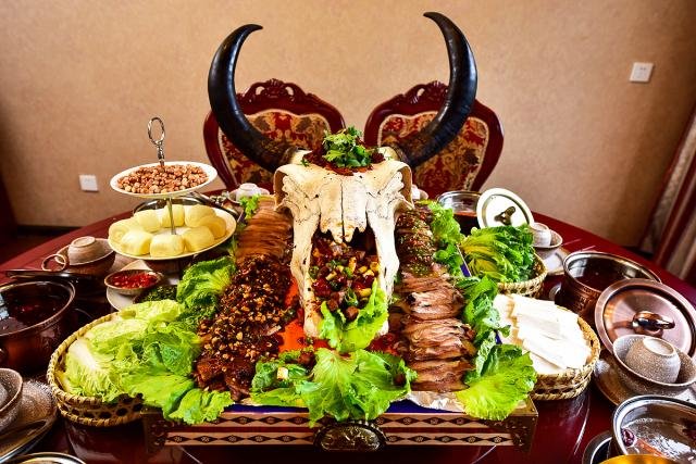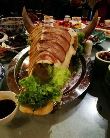 牛头宴是土家,的一个著名的宴会,属于一种古老的饮食习俗,很少有人制作。牛头宴虽然看起来吓人,但总体来说味道还可以,就是有点油腻,不适合口味清淡的人。吃油腻的牛头,吃点清淡的蔬菜,很好。