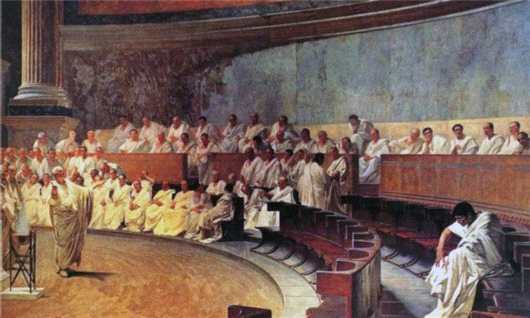 罗马元老院,19世纪作品,描绘西塞罗在元老院中言语攻击议员Catiline