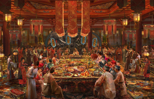 深夜,月黑星残,洛阳全城已入梦乡。安庆绪和严庄来到安禄山的寝宫外面,拿着刀把住门。宫内,李猪儿手拿一把快刀,蹑手蹑脚,走到安禄山的床前,掀开帐子,床上,安禄山鼾声如雷,睡得正熟。他的大肚子高高隆起,像一口煮饭用的大锅倒扣在身上一般。李猪儿定了定神,刚把刀举起,手不由自主地就抖起来了,头上也冒出了豆大的汗珠。随后,他把牙一咬,双手紧紧握刀,猛地劈进了安禄山的大肚子里!