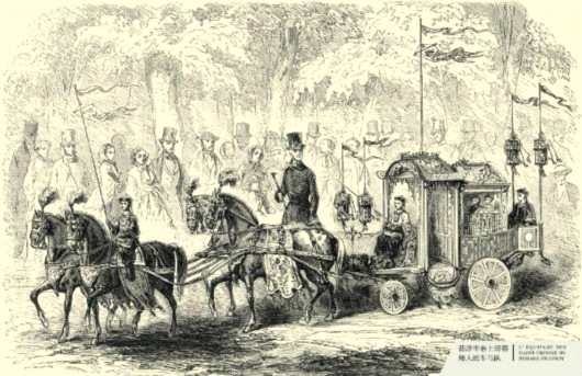 法国茹浮华巷上清朝矮人的车马队。选自《画刊》(L'ILLUSTRATION),1857年5月30,星期六,第744期。