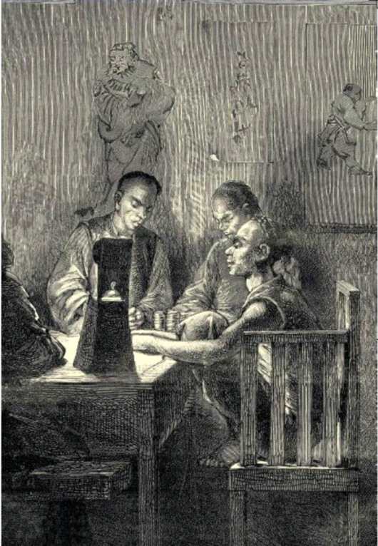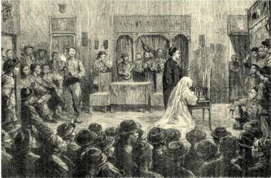 旧金山的清朝戏院。在这些令人颇为费解的情节中,祈祷占据了相当重要的分量。选自《旅行画报》(Journal des Voyages),1880年2月15日,星期日,第136期。