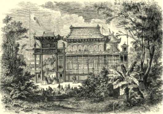 1867年巴黎世博会中国区全貌。根据穆兰先生的素描绘制。选自《世界画报》(Le Monde illustré),1867年5月11日,发行第11年,第526期。