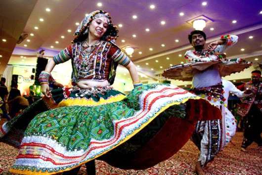 当地时间2018年10月12日,印度,印度庆祝“九夜节”(Navratri),各地的印度教徒盛装打扮,穿着传统服饰跳Garba舞歌颂杜尔迦女神(Goddess Durga)。东方IC 资料图